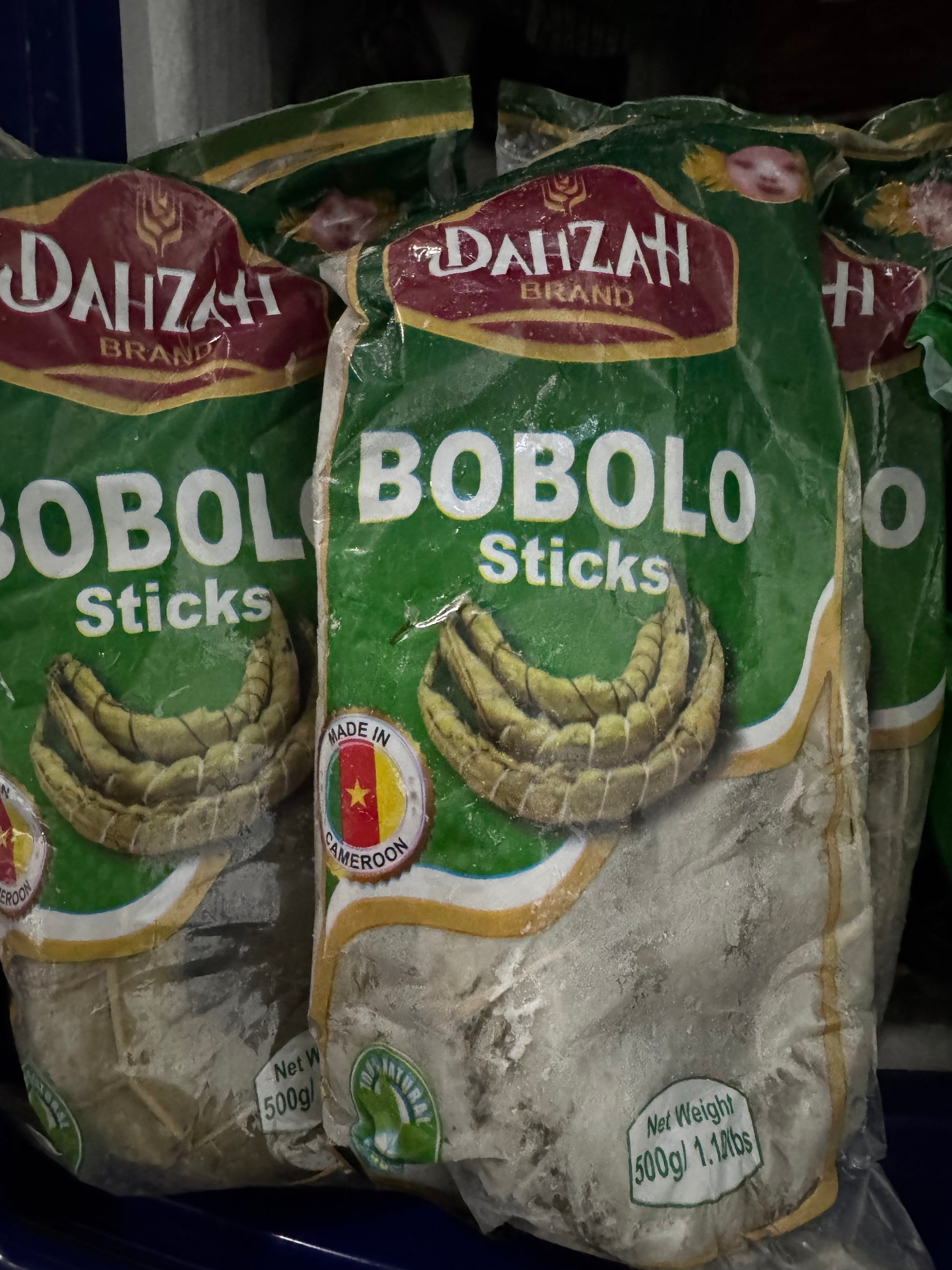 Bobolo Sticks, also known as Cameroon Cassava Sticks, are a traditional African delicacy made from fermented and steamed cassava. Each stick is carefully wrapped in banana leaves, giving it a distinct aroma and authentic taste. Soft, slightly tangy, and filling, Bobolo is a staple in many Central and West African cuisines, especially in Cameroon.